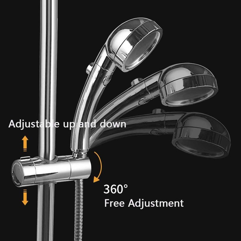 - 【360° Rotation】The shower head bracket can be adjusted from any angle, and the end part can be fully rotated 360 degrees so as to adjust the angle freely. The shower head bracket allows the hand-held shower head to be swivelled for quick tilting of the water outlet.