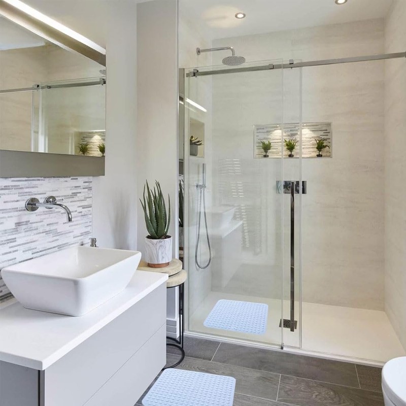 Shower Mat, 48 x 48 cm, Non-Slip Shower Mat, Massage Shower Mat, Non-Slip Mat with Suction Cup, Machine Washable, Sauna, Shower Room, Square (Light Blue)