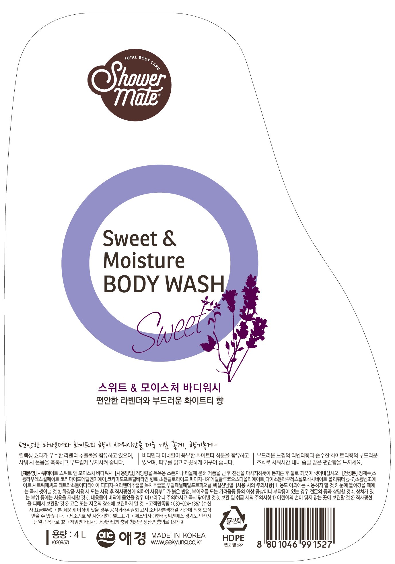 Shower Mate [Earn 2,000p for photo review] Shower Mate Sweet & Moisture 4L Body Wash (pump cap not included) / 샤워메이트 [포토리뷰 2,000p 적립]샤워메이트 스위트앤모이스춰 4L 바디워시 (펌프캡 미포함)