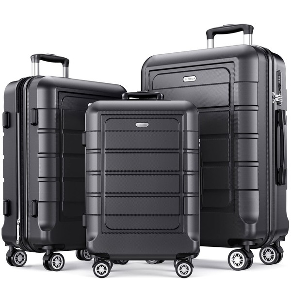 - Top Quality Luggage Sets: Made of brand new extra-thick PC+ABS materials for hardshell, which make the luggage more durable, lighter and impact-resistant. Features textured finish to prevent against scratches, keeping cases beautiful after a trip. 20in is best for carryon (not expandable), 24in & 28in expands 20% for more Spaces. Capacity : 20in33L 24in63L 28in 93L.