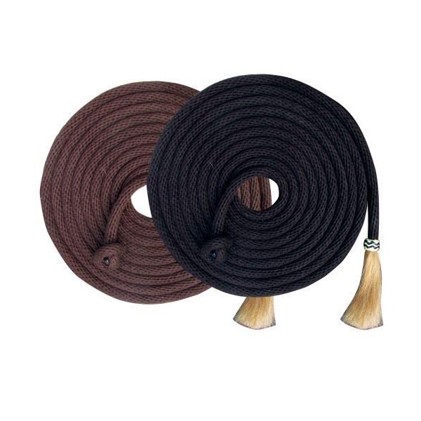 Showman 23' Nylon Mecate Reins w/Rawhide Accents & Natural Horse Hair Tassels (Black)