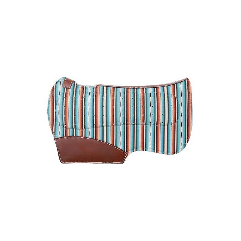Featuring a vibrant teal serape pattern, this pad adds a bold, eye-catching style to your tack. The contoured shape provides a natural fit, reducing pressure points and improving saddle stability. The vented wither design allows for increased airflow, preventing heat buildup and ensuring your horse’s comfort during long rides.