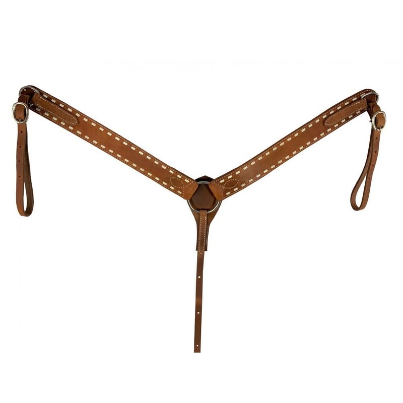 Showman Argentina Cow Leather Buckstitch Breast Collar. This breast collar features Argentina cow leather with buckstitch trim and measures approximately 2" wide. Available Colors: Medium Oil and Black.
