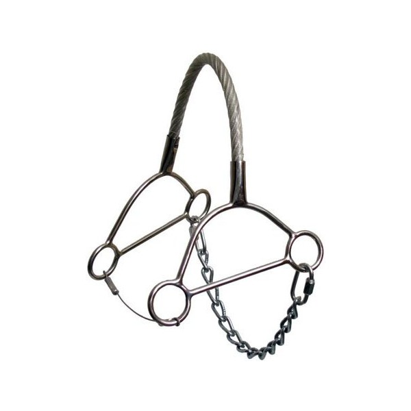 Showman stainless steel hackamore with a wax coated twisted rope noseband and 6" cheeks.
