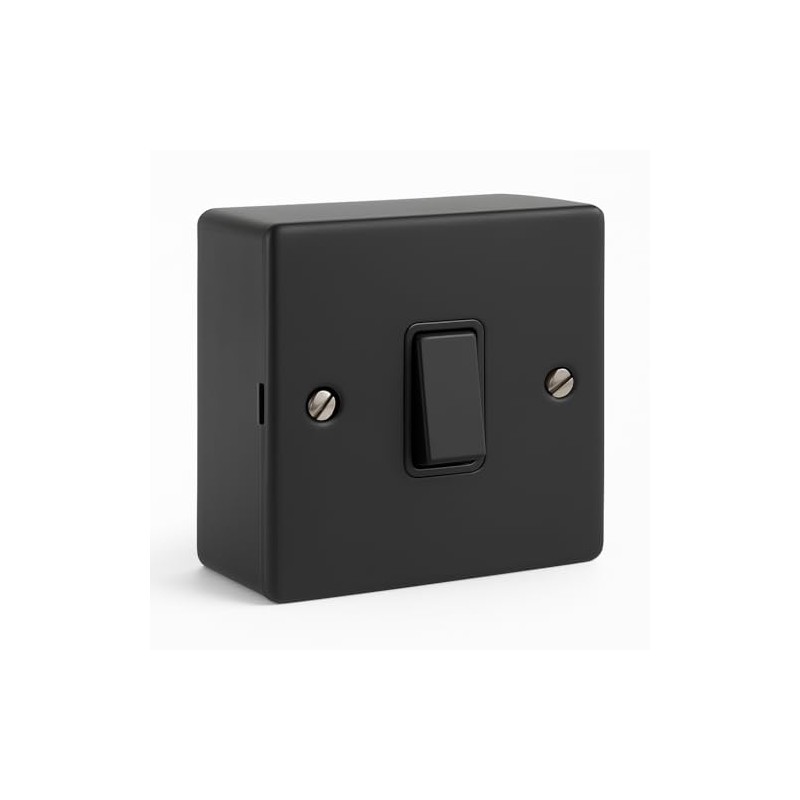 SHPELEC® Matt Black Metal Switch and Socket Range with Surface Mount Back Box – Sleek, Durable, and Easy to Install (1 Gang 10A Switch + Back Box, Screwed Version)