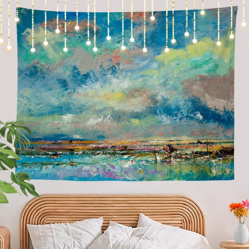 Shrahala Modern Bright Wall Tapestry, Fine Bright Abstraction Designed In Modern Oil On Wall Hanging Large Tapestry Decoration Polyester Fiber White Hem Around For Dorm Room Bedroom 30 X 40 In