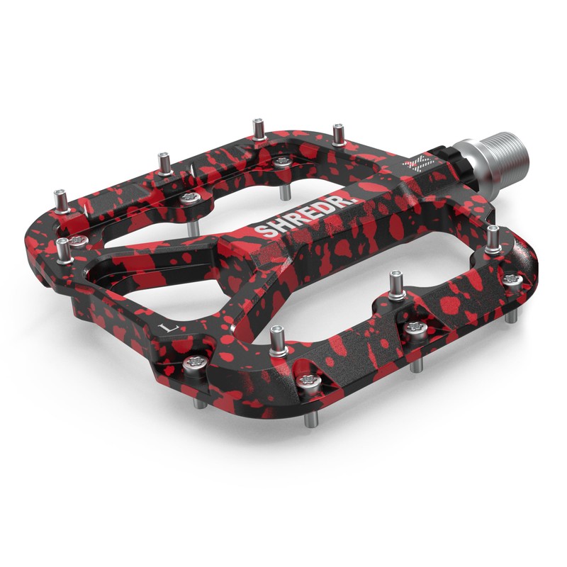 • Special edition. - The popular Shredr. Flat pedal in a special series in splatter design. - Each pedal is uniquely multi-coloured anodized.