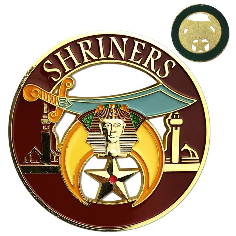 - Shriner Round Burgundy Masonic Auto Emblem.