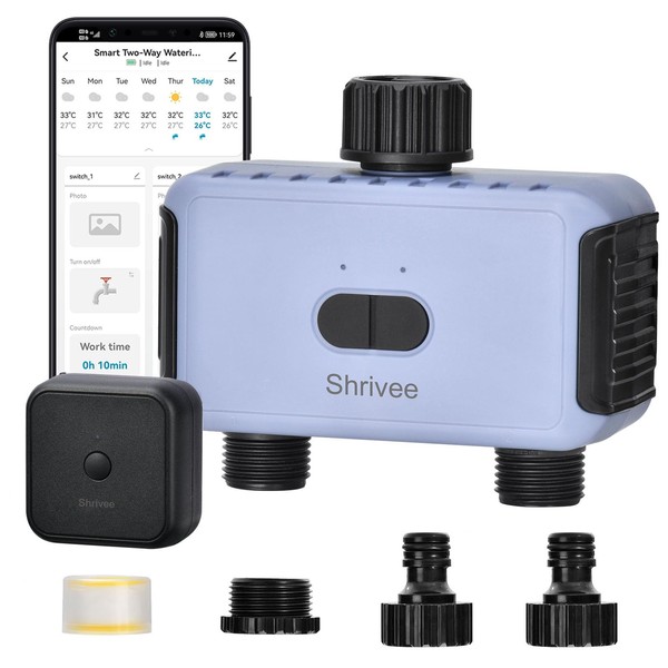 Shrivee Irrigation Computer WLAN 2 Outputs, Garden Watering Timer, Automatic Irrigation Control with App/Voice Control, for Garden Greenhouse