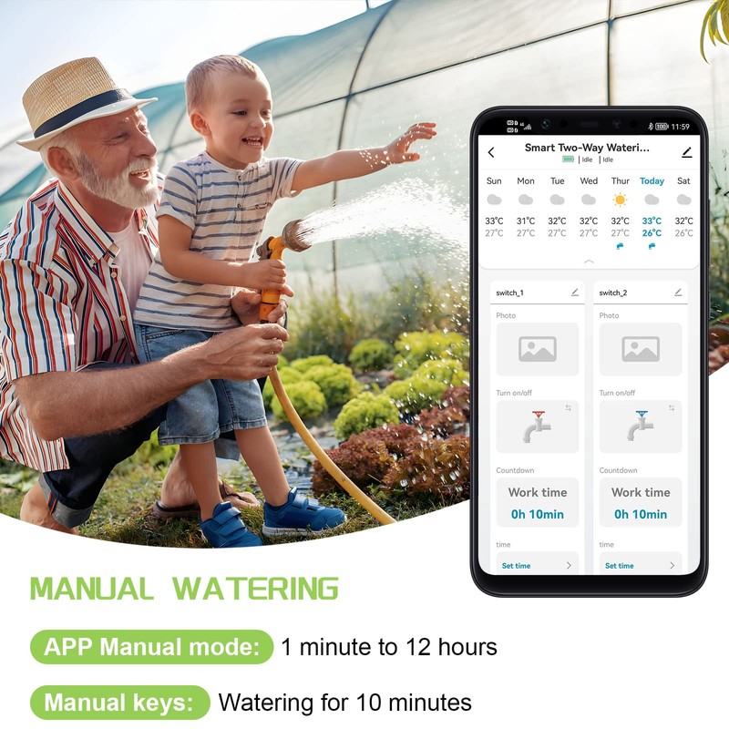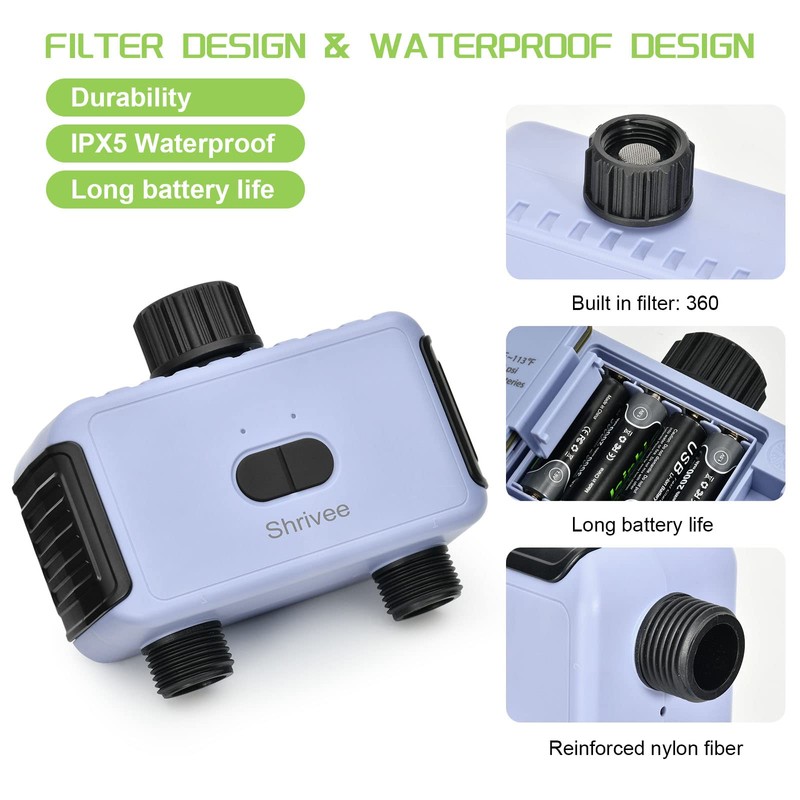- Switchable to two modes: this water timer can be applied to watering mode and mist mode, which is ideal for watering applications in the garden, lawn, greenhouse, courtyards, flower beds, etc. It makes your life smarter