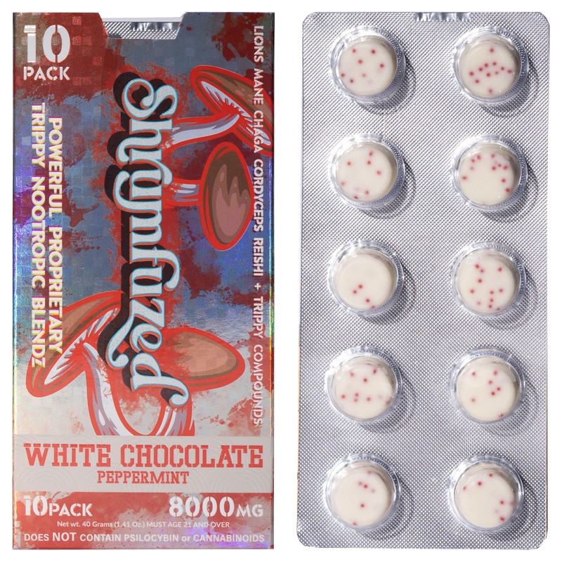 Shrumfuzed Shrumfuzed - Proprietary Nootropic Gummy 8000mg - Lion's Mane, Reishi, Chaga, and Cordycep Nootropic Tripee Mushroom Blend (10, White Chocolate Peppermint)