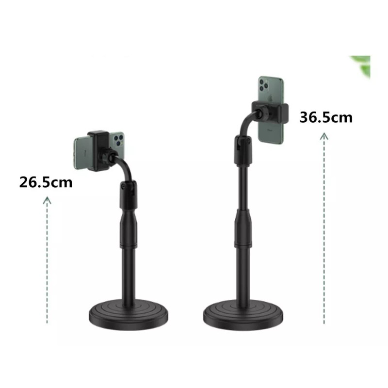 1.Altura y Ángulo Ajustables: La altura del soporte del teléfono se puede ajustar fácilmente de 26 cm a 36 cm y admite rotación horizontal 360 °, rotación vertical 180 °. Un ángulo de visión y una altura cómodos ayudarán a corregir su postura y reducir la tensión en el cuello y la espalda.