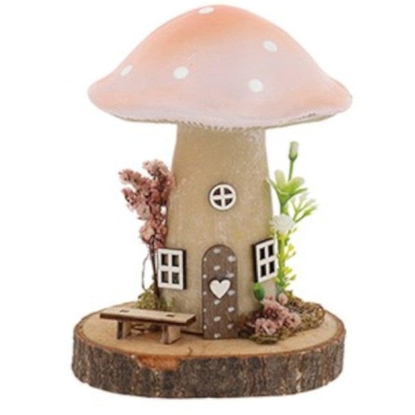 Shudehill Giftware Medium Spring Folk Art Toadstool Cottage 345535 Pink