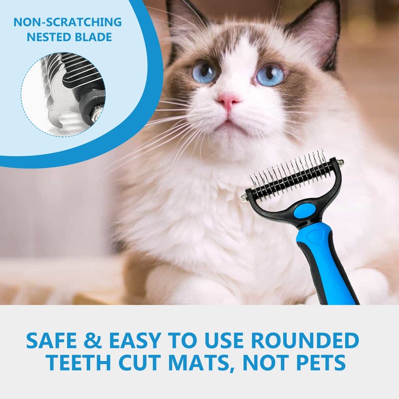 - 【Safe Rake】The undercoat rake with the tines comb is rounded and smooth, which can protect and gently massage the pet's skin, and won’t poke or scratch. The inside teeth of the dog dematting comb is sharp enough. So, the toughest mats, tangles, loose hair and knots on the pet can be removed more smoothly. At the same time, it will not cause harm.
