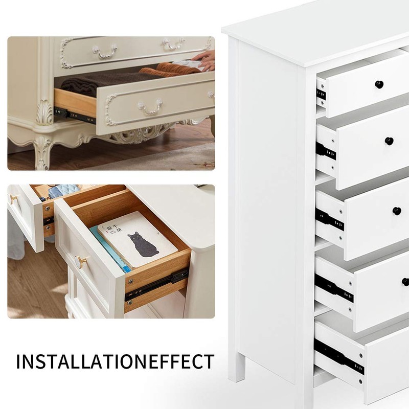 - Rust protection and durable: surface electrophoresis treatment to prevent direct contact with air, improve oxidation resistance and corrosion resistance. Solid ball bearings ensure quiet and friction-free movement. 30-year service life, after testing, the drawer slide opened and closed smoothly more than 100,000 times.