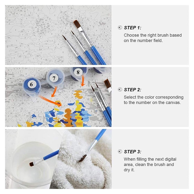 • Using High-quality safe acrylic paints.3 size high quality nylon painting brushes .Size: 16 by 20 inch(about 40 by 50 cm)