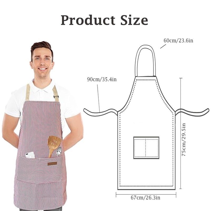 - 【Adjustable Neck Strap for a Custom Fit】-Adjustable neck strap 60cm/23.6in, length of one side belt: 90cm/35.4in.Whether you're tall or petite, this apron can be easily adjusted to suit your body size, ensuring a snug and secure fit every time you wear it.