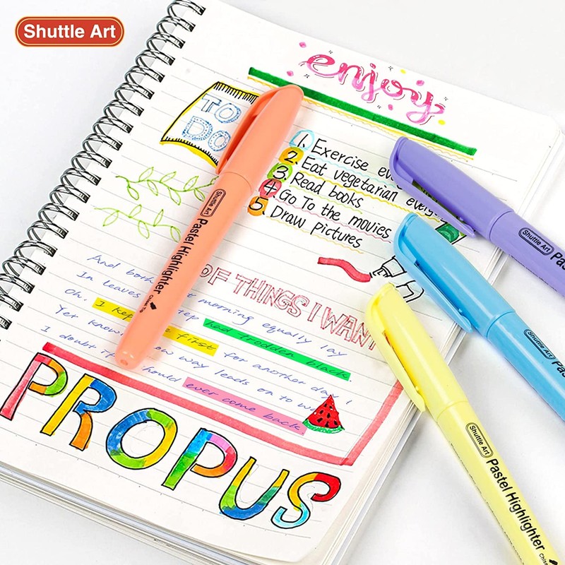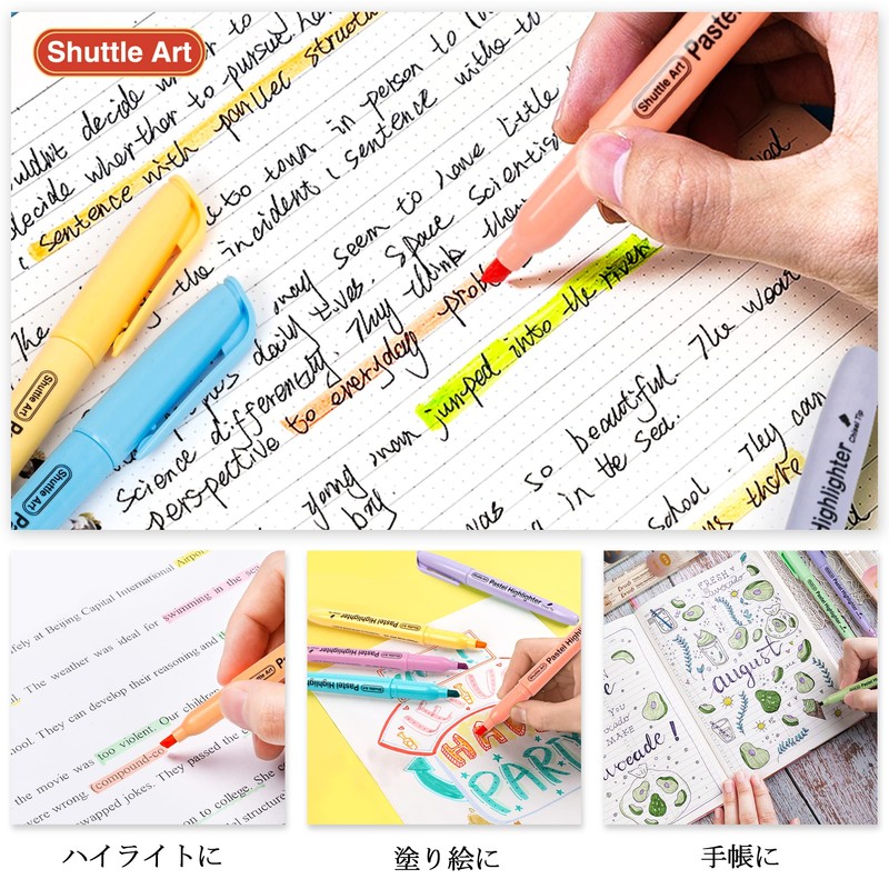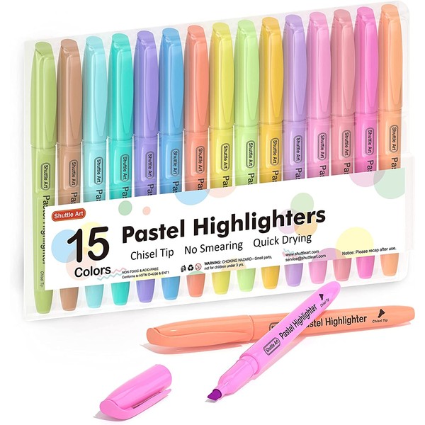 Shuttle Art 蛍光ペン ソフトカラー 15色セット 水性マーカーペン 薄い パステル色 チゼルチップ 速乾 裏移りにくい アンダーライン マーキング 色塗り ハイライト 手帳デコ イラスト ノート 女の子 勉強 仕事 趣味 学校 オフィス