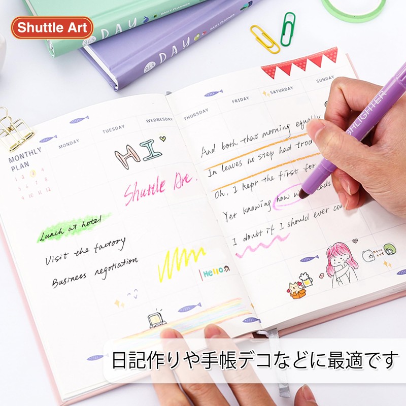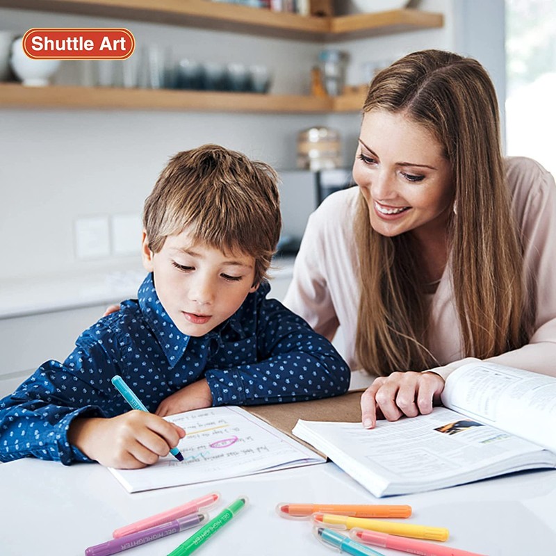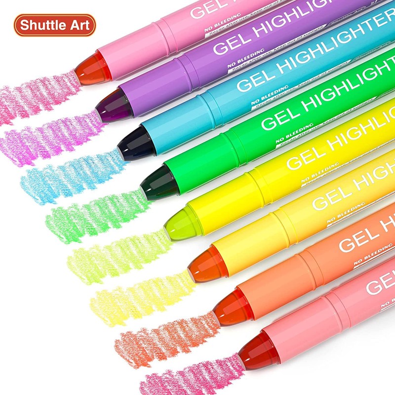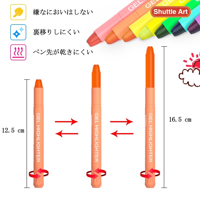 Shuttle Art 蛍光ペン 8色 16本セット 固形蛍光マーカー 蛍光クレヨン 速乾 裏移りしにくい 繰り出し式 ゲルインク 透明ケース付き 教科書...