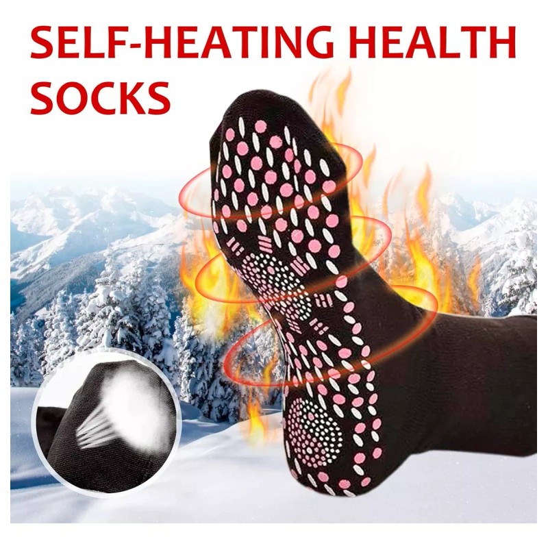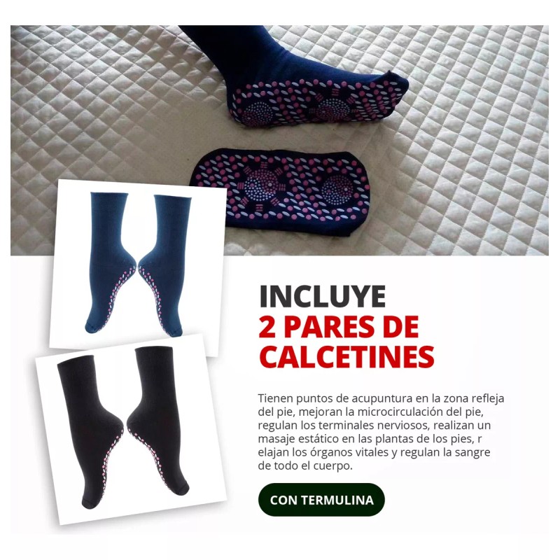 Imagina un frío donde tus pies se mantienen cálidos y relajados, sin importar lo helado del exterior. ¡Nuestros Calcetines Térmicos de Turmalina y Acupresión hacen esto posible! No solo te ofrecen calor, sino que también masajean tus pies con cada paso, gracias a sus puntos de acupresión.