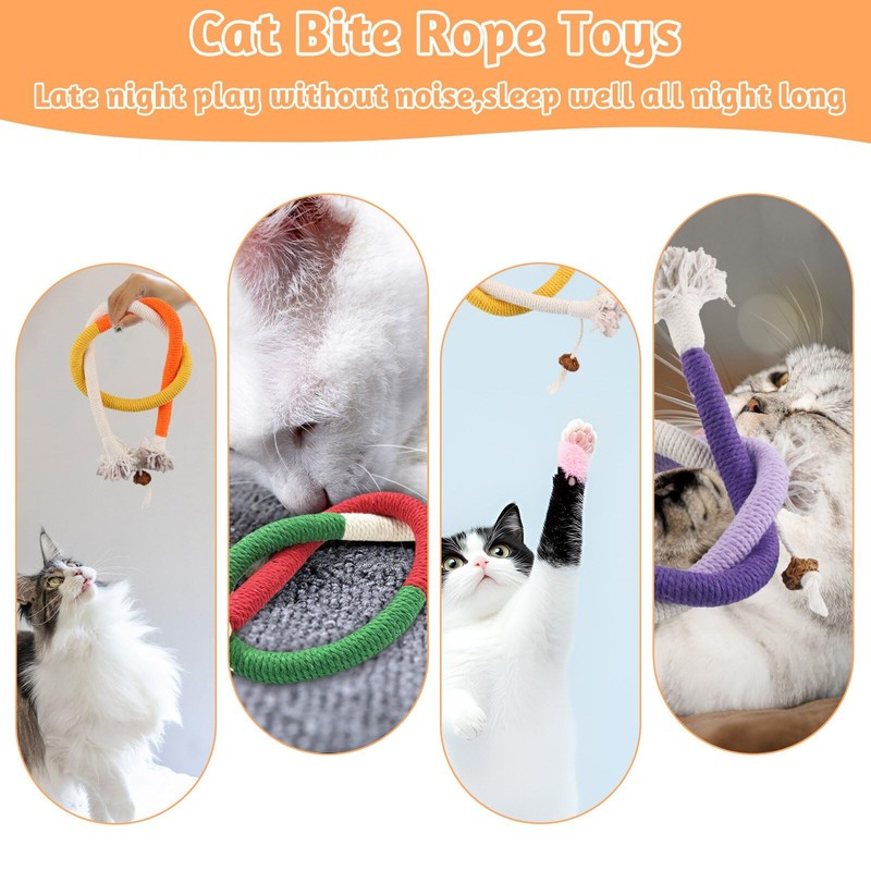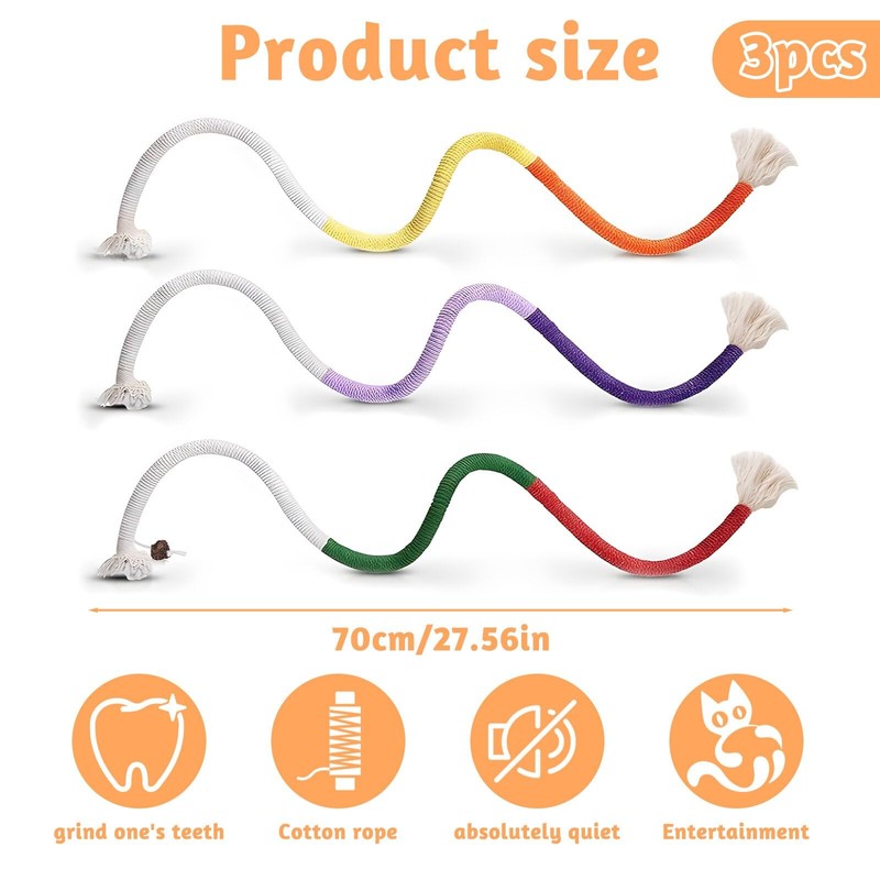 - Unique design: the bright colours and catnip of the cat chew rope can exude a unique aroma that cats cannot resist. The cat chew toy can quickly catch the cat's eyeballs and awaken their curiosity and desire to explore