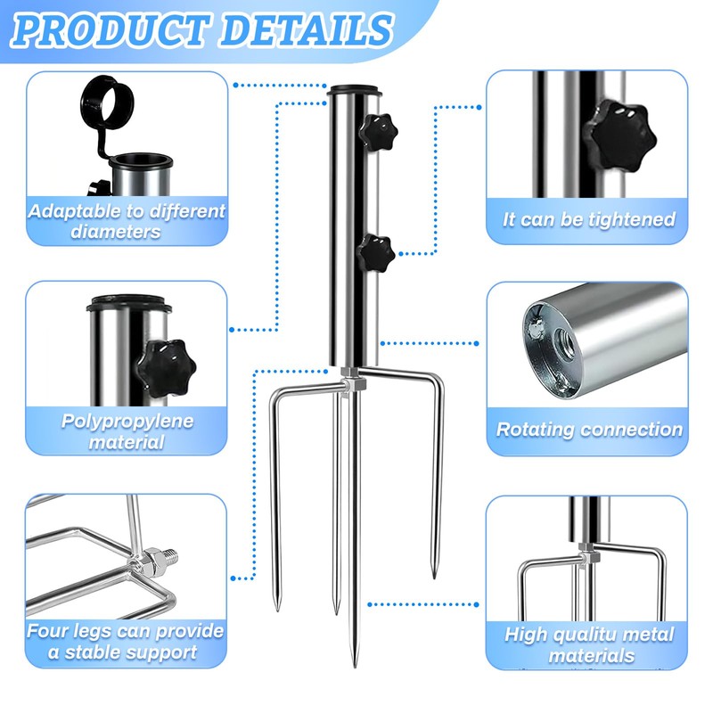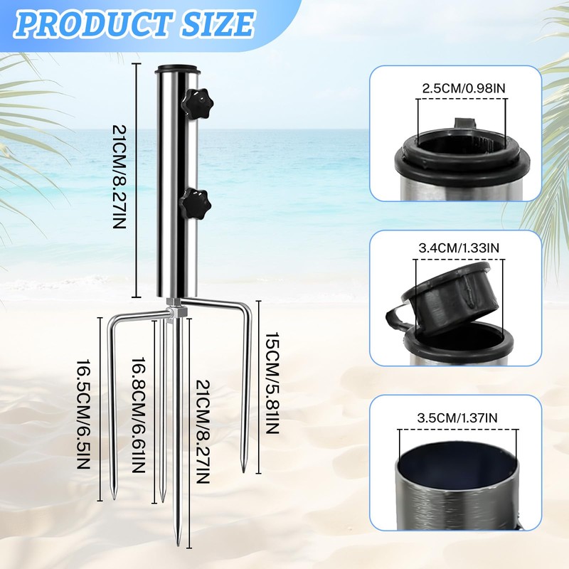 • Versatile: this beach parasol stand is not only perfect for the beach, but also suitable for gardens, caves, fields and backyards. The beach umbrella holder offers flexibility in the choice of location and is compatible with parasol poles with a diameter of up to 3 cm.