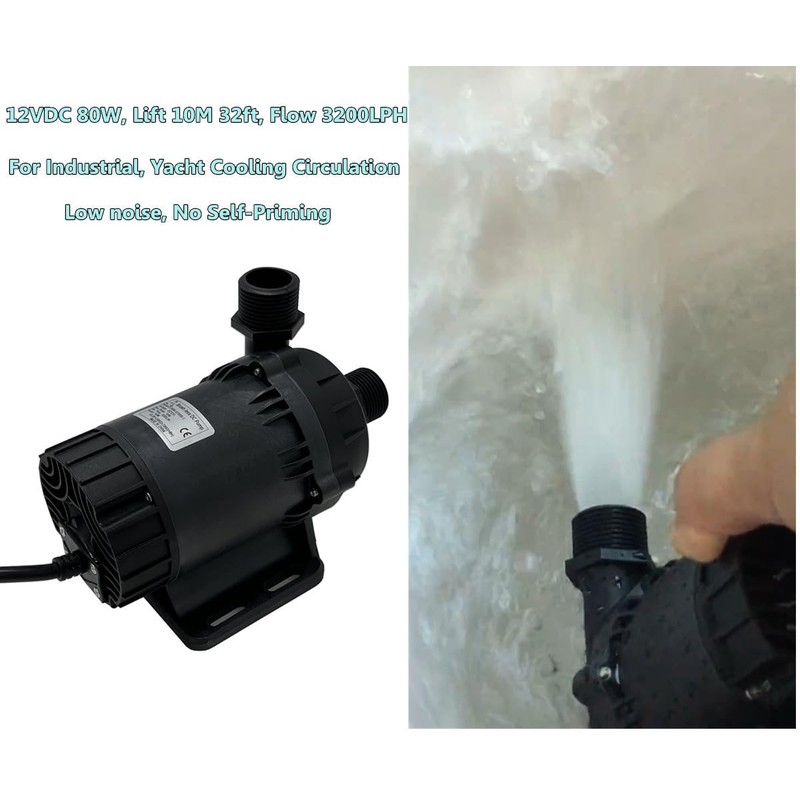 SHYSKY Heavy Duty Low Noise 12V 80W Micro Brushless DC Water Pump DC60G-12100S-1 32ft 845GPH, DRY RUN Protection, For Cooling Circulation Pressure Sys