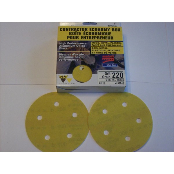 SIA ABRASIVES 25 SIAFAST 5" HOOK & LOOP SANDING DISCS 5 HOLE 220 GRIT