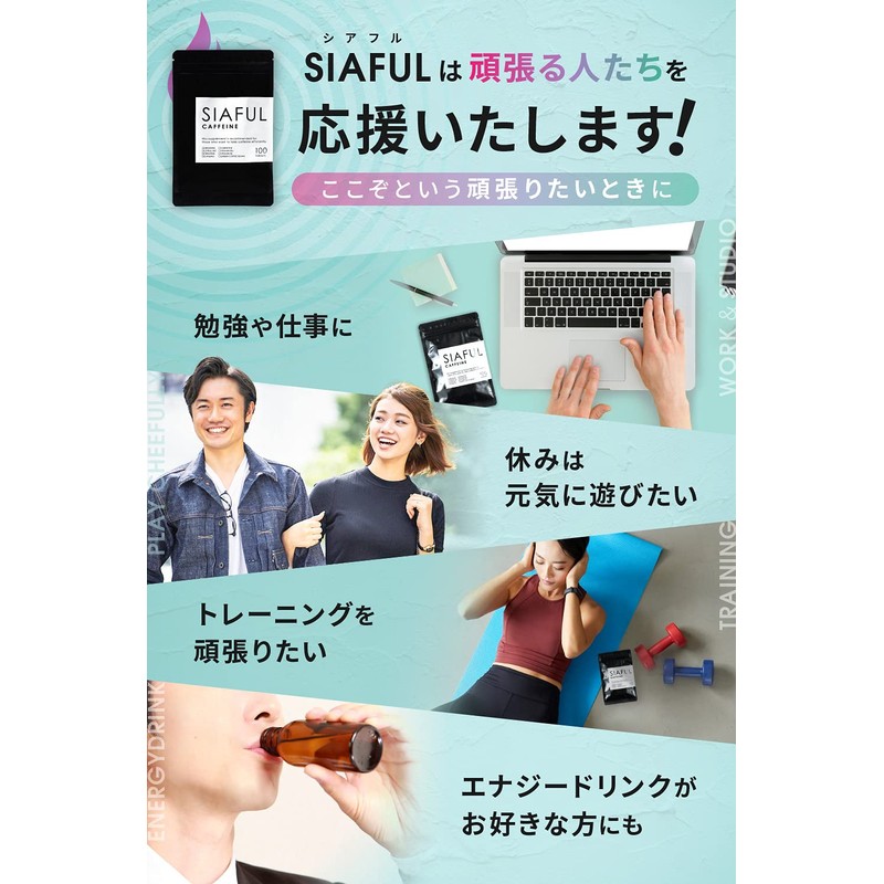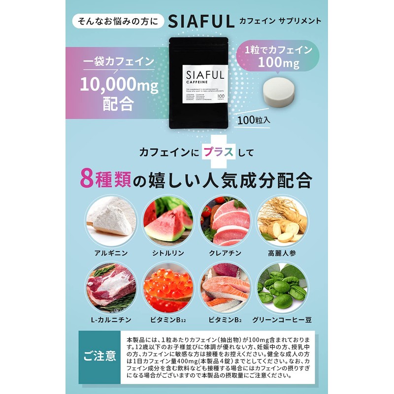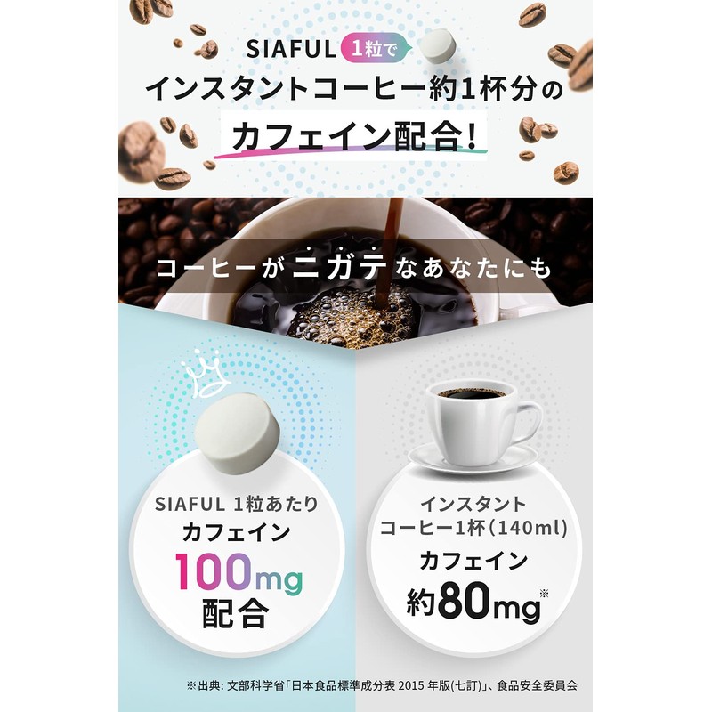 SIAFUL 【 カフェイン 1錠 100mg 1袋10,000mg 】 国内工場 厳選9種 全内容量 1錠 300mg サプリ 錠剤 100錠入