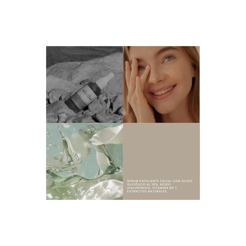 🌟 ⭐ Sialbé Serum del Mar - Suero Facial Ácido Glicólico 10% con Ácido Hialurónico, Vitamina B5 y Extractos Naturales – Exfoliante Antiarrugas, Reduce Manchas y Poros Visiblemente, Piel Suave y Luminosa 30 ml ⭐ 🌟