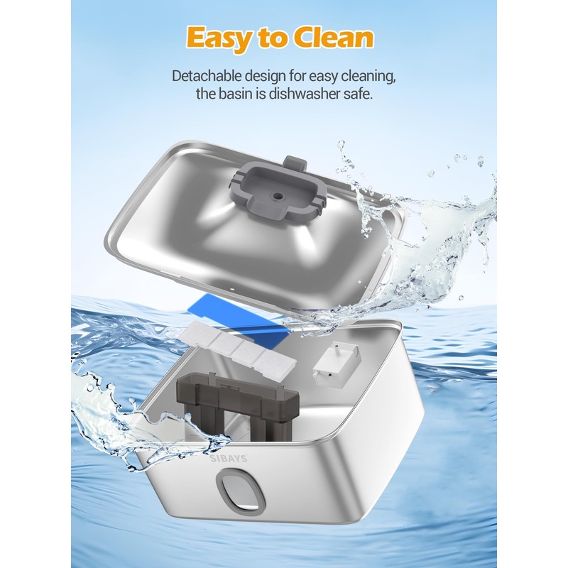 - Easy to Clean: Stainless steel dog water fountain can be assembled and disassembled in just a few minutes, making it easy to clean and replace. Plus, the basin is dishwasher-safe(pump, filter, and water tray not included). For your pet's health, we recommend replacing the filter and sponge every 1-3 weeks.