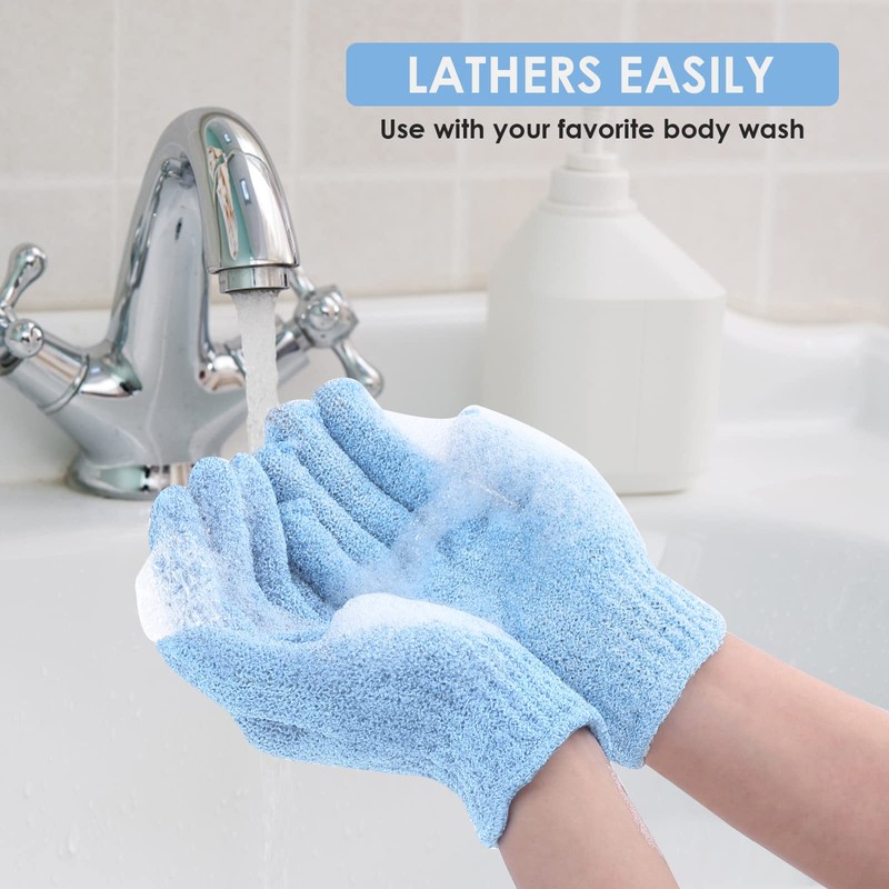 - Washable and reusable exfoliating gloves: The body exfoliating gloves are of good quality, so they can be machine washed or hand washed. The exfoliating washcloth is durable and can be reused. What's better, there is a hanging loop on each body exfoliating glove for convenience to hang on a hook to dry