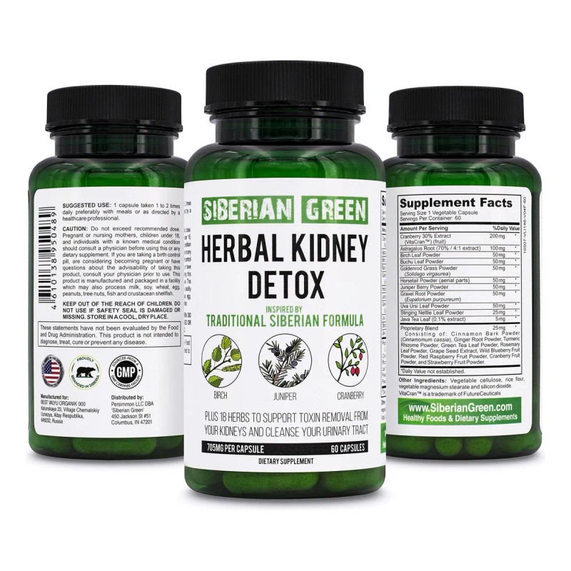 Siberian Green Detox Renal, en 60 cápsulas, es un suplemento tradicional para la desintoxicación y soporte de los riñones, que ayuda en la eliminación de toxinas y promueve la salud urinaria. Siempre siga las indicaciones de la etiqueta y consulte a un médico antes de usarlo, especialmente si tiene condiciones médicas preexistentes o toma otros medicamentos.