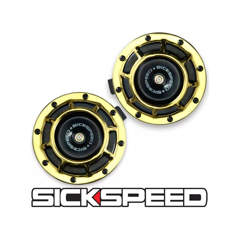 SICKSPEED 2PC 24K GOLD SUPER LOUD COMPACT ELECTRIC BLAST TONE HORN CAR 12V P6