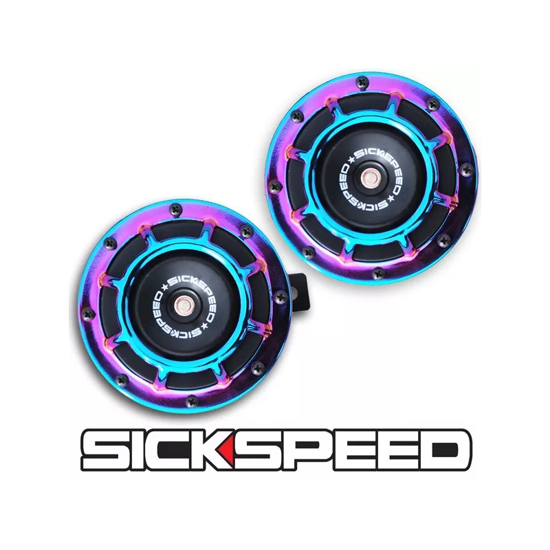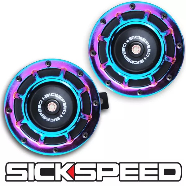 SICKSPEED 2PC NEO CHROME SUPER LOUD COMPACT ELECTRIC BLAST TONE HORN CAR 12V P26