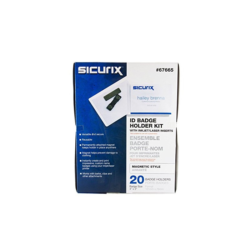 SICURIX Magnetic Style Printable Badge Kit 4" x 3" Horizontal 20 Pack (67665)