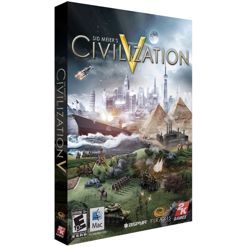 * _Civilization V_ Mac introduces hexagon tiles allowing for deeper strategy, more realistic gameplay and stunning organic landscapes for players to explore as they expand their empire. * The brand new engine orchestrates a spectacular visual experience featuring fully animated leaders interacting with players from a screen-filling diplomatic scene and speaking in their native language for the first time. * Successful diplomacy will depend on players carefully managing relationships with other leaders, trading items and land, plying them with gold, and deciding if they are friend or foe. * Expanded visuals and immersive audio invite would-be kings to take up the reigns of power and forge a mighty empire. _Civilization V_ offers a limitless variety of vast, realistic and diverse landscapes for players. * An intuitive interface eases both new players and Civ veterans into the game. Guided by a set of trusted advisors who will explain game functionality and provide counsel for significant decisions. * Wars between empires feel massive as armies dominate the landscape, and combat is more exciting and intense than ever before. * The addition of ranged bombardment allows players to fire weapons from behind the front lines, challenging players to develop clever new strategies to guarantee victory on the battlefield. * Write your own epic story each time you play. Choose one of eighteen historical civilizations to lead from the stone-age to the space age on your quest to build the world's most powerful empire.