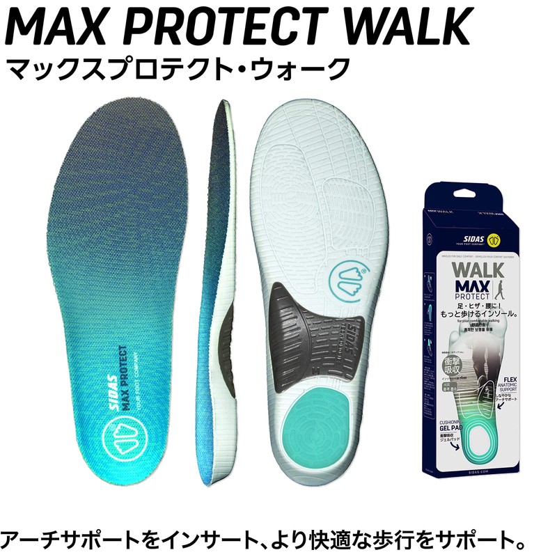 SIDAS 320766104 Max Protect Walk, Size M, 9.8 - 10.4 inches (25.0 - 26.5 cm), Insole, Arch Support, Shock Absorption, Lightweight, Walking, Everyday Use