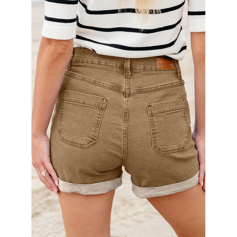 Sidefeel Womens Jean Shorts Casual High Waisted Stretchy Buttoned Folded Hem Jean Shorts Brown Size 10