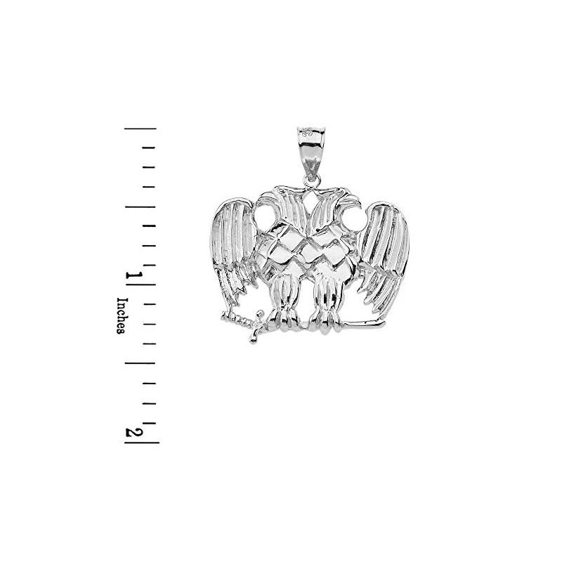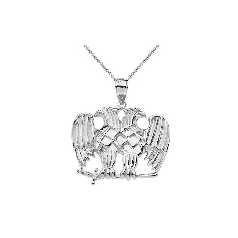 Sideways Crosses 925 Sterling Silver Double Headed Eagle Masonic Pendant Necklace, 22"