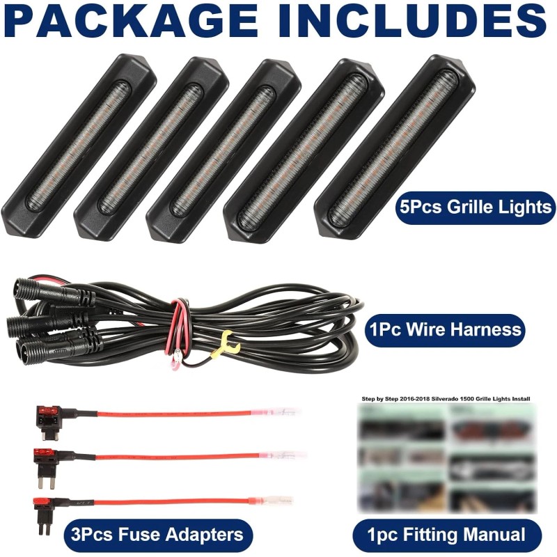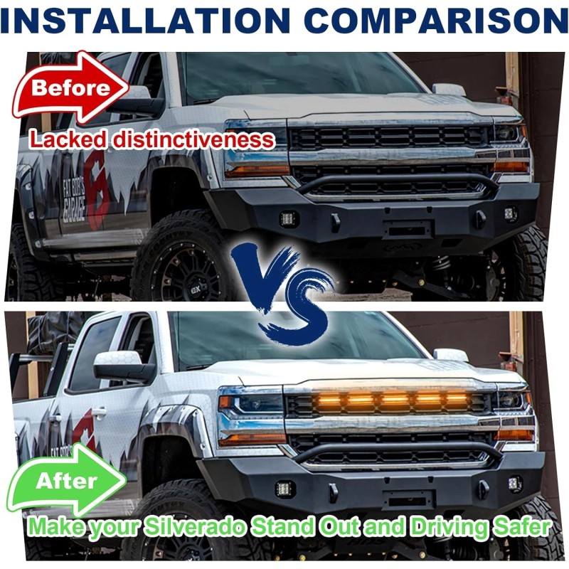 [Fitment] - Vehicle Specific. This silverado 1500 led front grille lights fits for 2016-2018 Custom,WT,LT,LS. Not fit for 2500,3500 and other trim. Please check if the grille matches before purchasing.