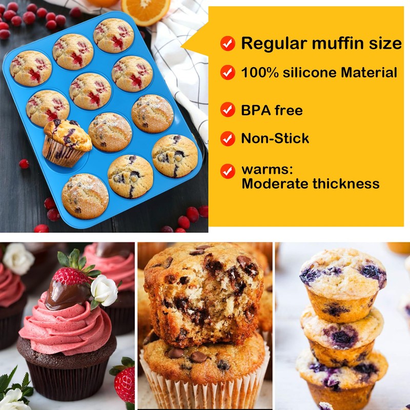 - Works Grate&Save you money :package including 2pcs Reglar 12Cups silicone heart muffin pan mold, regular size and normal thickness, and it’s butter to use a cookie sheet for stability in moving to and from the oven. This silicone cupcake molds will works great and save your money