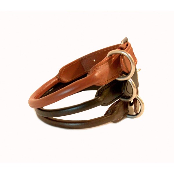 SIE Rolled Leather Dog Collars (12'', Brown)