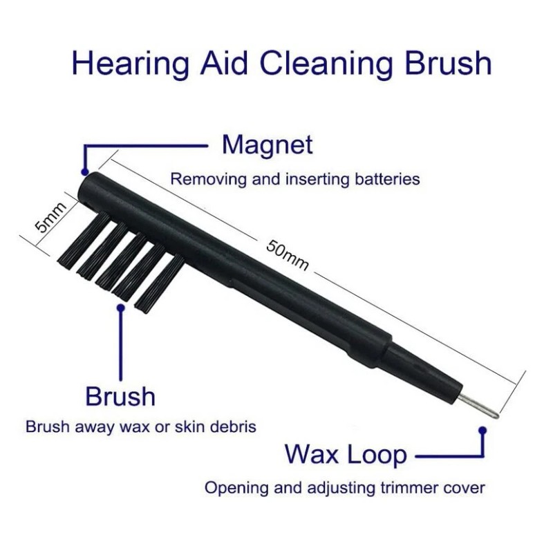 Magnet on brush end makes removing and inserting hearing aid batteries easier, convenient for the seniors.