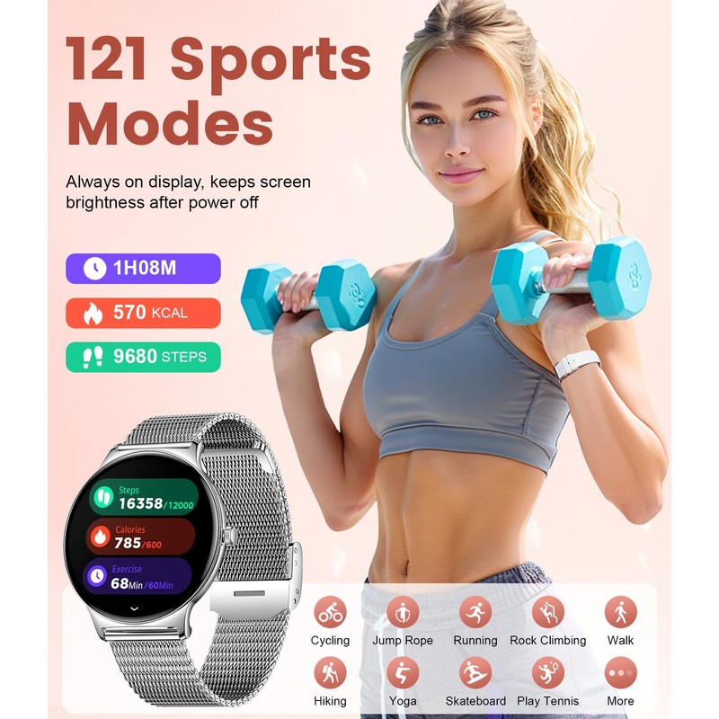 • 🍀 【The Ideal Gift-Ultra-Thin Design with Two Interchangeable Straps】This elegant 2024 women's smartwatch stands out with its ultra-thin design and luxurious straps. The slim dial not only emphasizes the elegant style but also ensures high wearing comfort. The watch comes with two interchangeable straps – an ultra-thin mesh strap and a soft silicone strap – allowing you to easily adjust the style of the watch depending on the occasion. Whether for formal events, daily wear, or sports activities, this watch is the perfect companion, highlighting your unique sense of fashion.