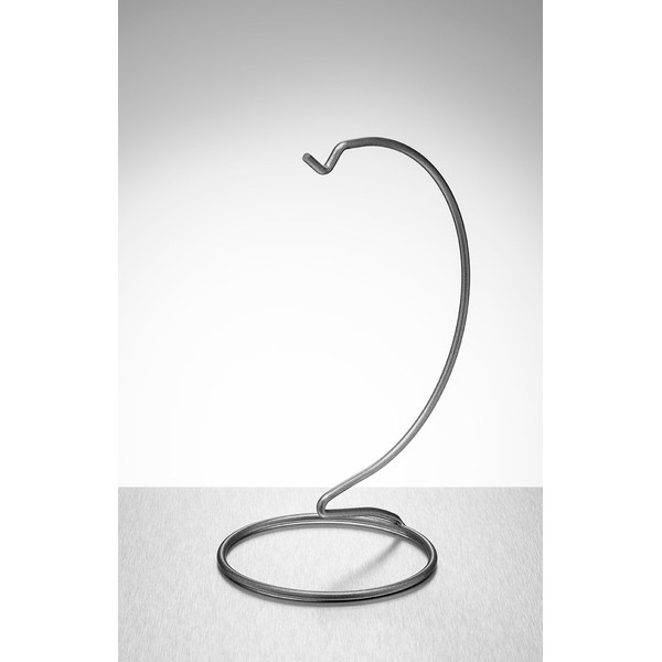 Silver Ornament Stand Hanger, suitable for 9cm, 10cm and 12cm glass friendship and spirit balls, large hearts or medium hanging ornaments. The stand is 18cm high and 10cm wide across the base. Also available in small and large.
