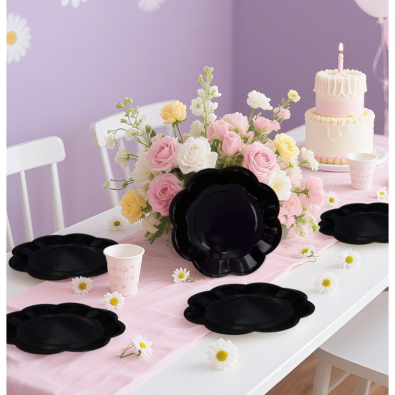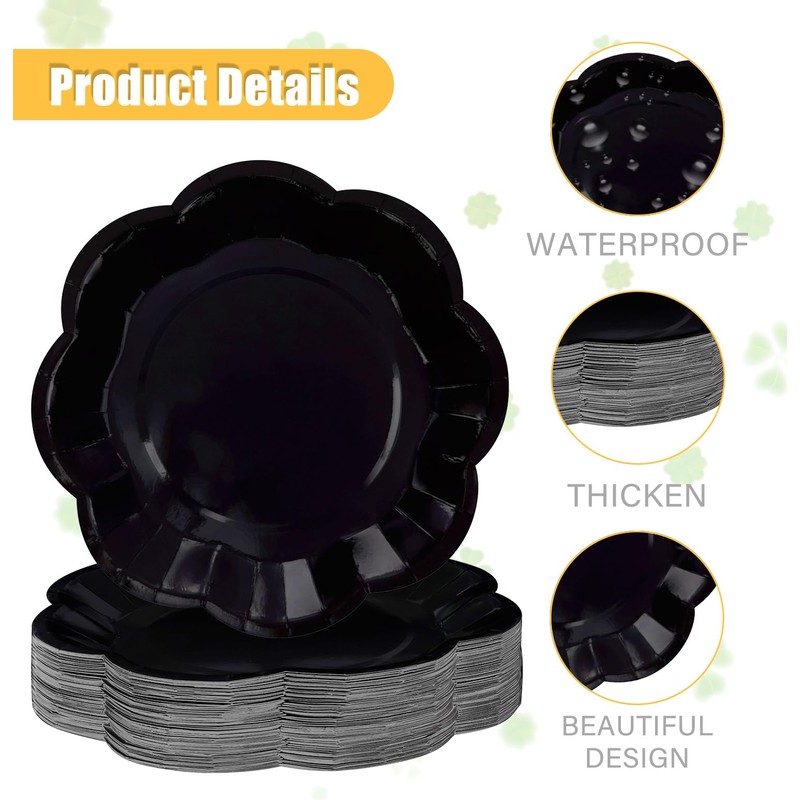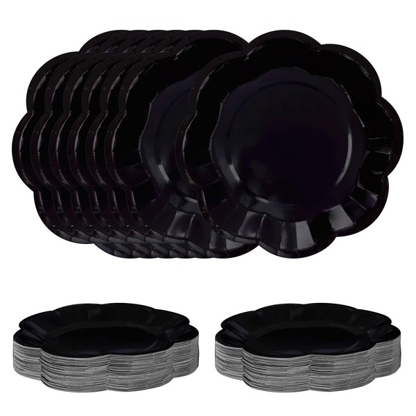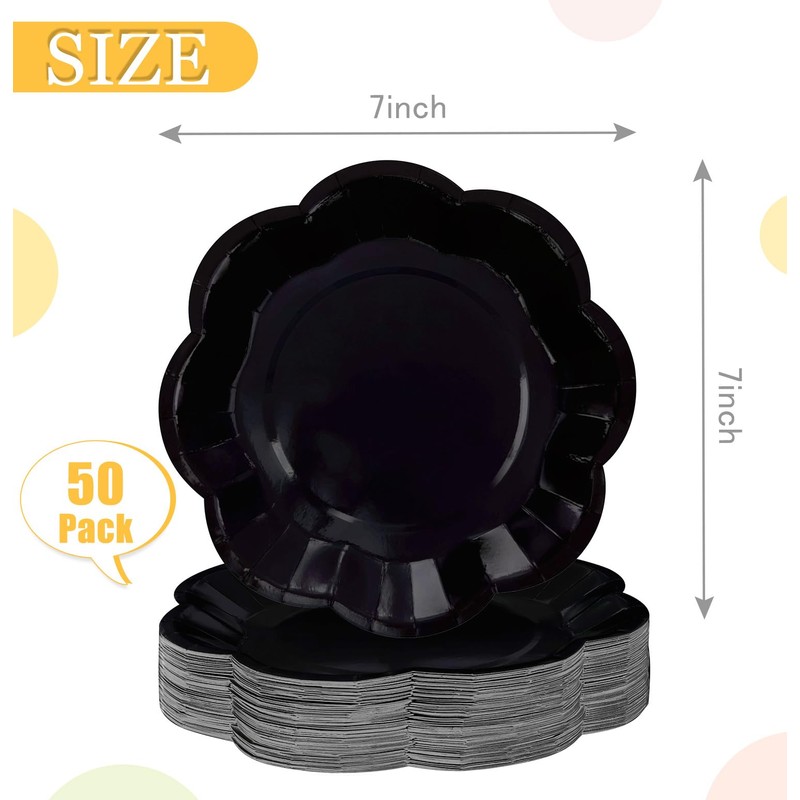 SietDESEO 50 Pieces Black Paper Plates 7 Inch