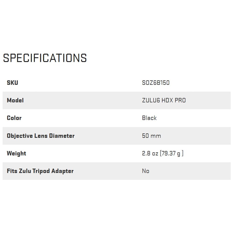 - Specifically designed for the ZULU6 HDX PRO 50mm Binoculars;