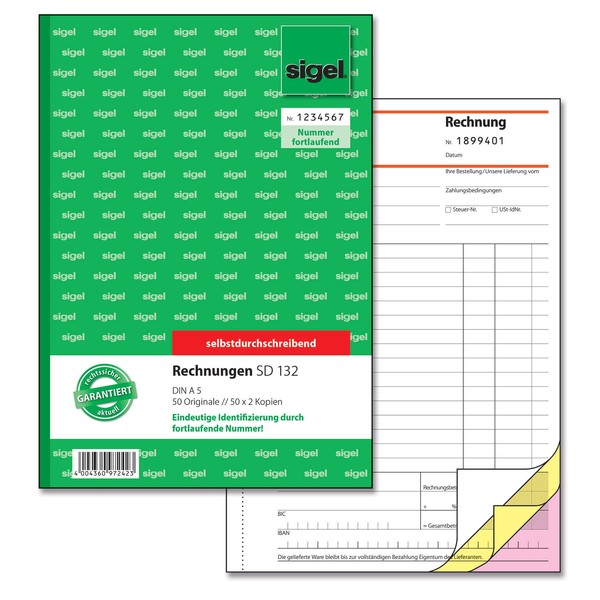 Sigel Forms – Bills A5 continuous numbers, 2 copies, 1 piece Pack of 1