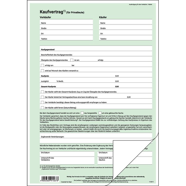 - Purchase Agreement (General), Self-Copying, A4, 2 Folds, Pack of 25. Made in Germany